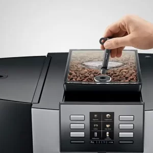 Un depósito de agua de 3 l de capacidad, un recipiente de café en grano para 500 g de contenido y un depósito de posos para hasta 25 porciones...