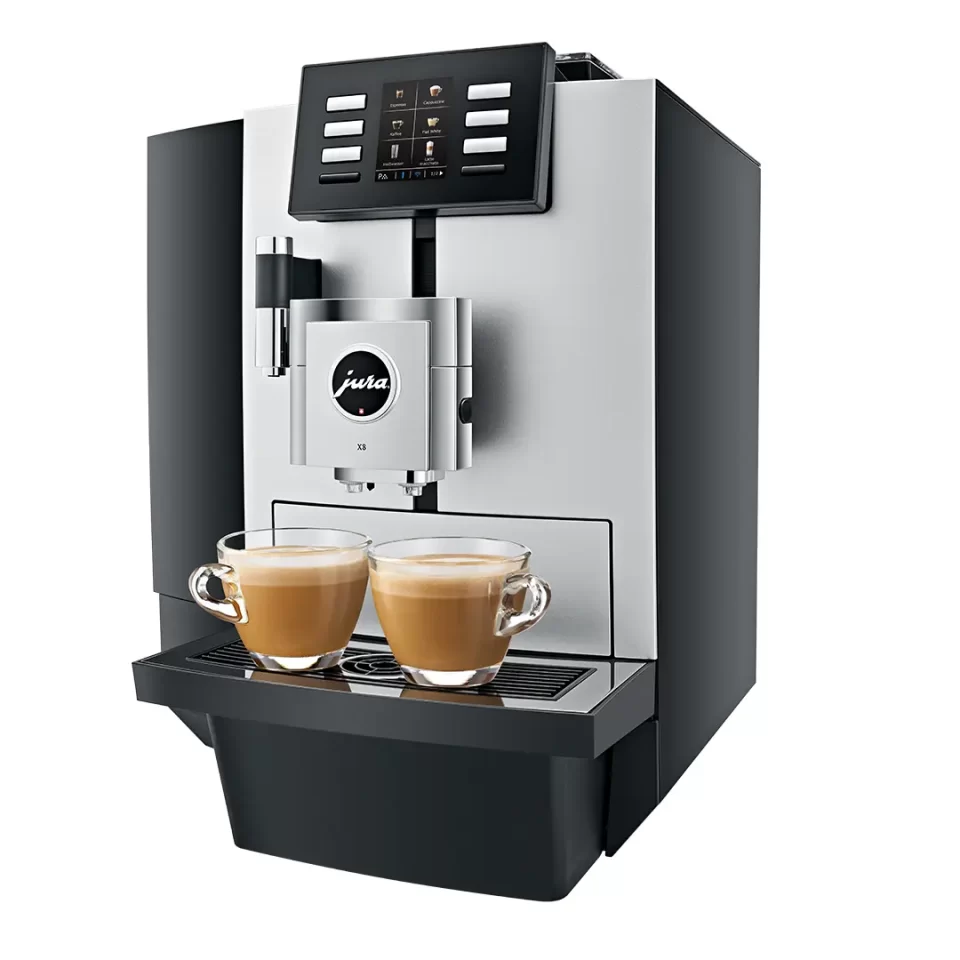 El X8 es increíblemente versátil: puede preparar toda la gama de cafés especiales terminados con leche y espuma de leche, así como cafés negros. Para los amantes del té, también prepara agua caliente a diferentes niveles de temperatura. Con su pico doble sólido, ajustable en altura, puede crear un café...